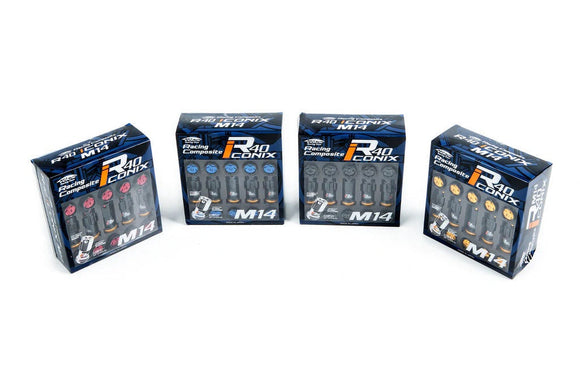 The Project Kics R40 iCONIX M14 Nut & Stud Kit are possibly the best quality and visually stunning wheel lug nut sets available on the market. Available in M14xP1.25 in a Black body with either Red, Blue, Gold or Black Aluminum End Caps.
